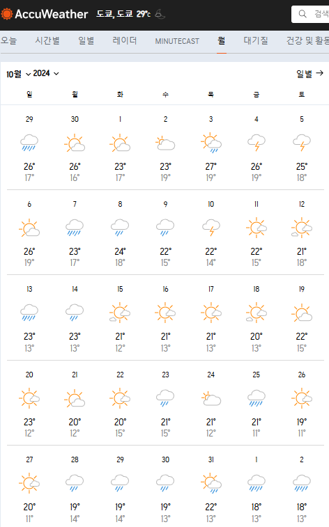 아래에서, 10월 일본 지역별 날씨 정보에 대해 알아보시기 바랍니다.